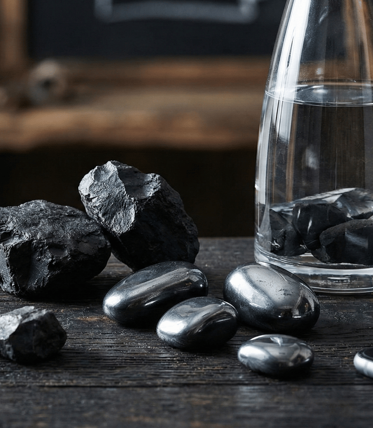 El Shungite es un mineral único en el mundo, tan antiguo como la Tierra misma. De origen ruso, se extrae principalmente de la región de Karelia y es reconocido por su extraordinaria composición: contiene fullerenos, moléculas de carbono orgánico con propiedades que la ciencia continúa estudiando con fascinación.